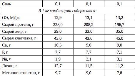 Анализируя состав и питательность представленных комбикормов, можно утверждать, что в каждую фазу выращивания цыплята-бройлеры всех групп были обеспечены необходимым количеством питательных и минеральных веществ для получения запланированных приростов живой массы.