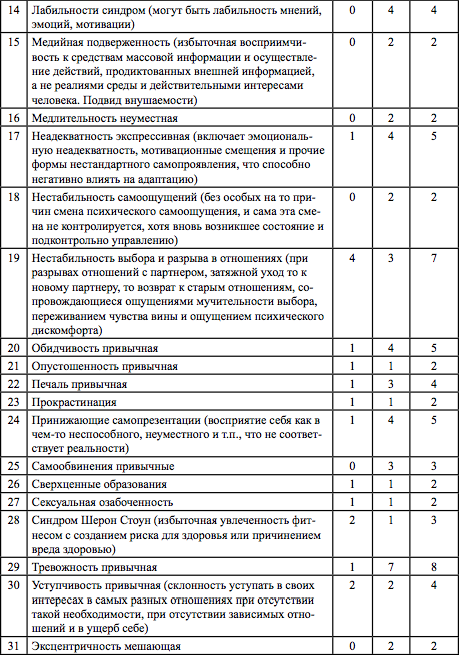 Проведение анализа данных, полученных в ходе проводившихся клинических интервью, позволило определить существование целой группы феноменов, которые не могли быть отнесены к психическим расстройствам и их описания отсутствуют в МКБ-10. Однако эти феномены причиняли дискомфорт и послужили основанием для обращения за помощью. В табл. 2 приведен список феноменов и их распространенность, включая половую дифференцировку.