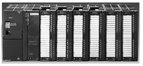 На рис. 4 представлена станция распределенной периферии ET200M. На базовой панели станции 6 сигнальных модулей (модулей ввода-вывода) 1 интерфейсный модуль Profibus и блок питания.