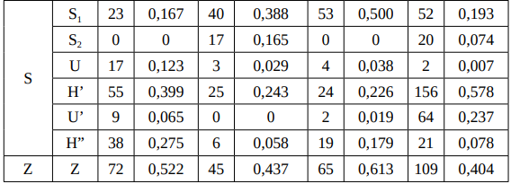 В других генетических системах у всех пород относительно невысокой была частота эритроцитарных антигенов J, M, S2 и U, которая составила, соответственно, по породам 0–0,107; 0–0,130; 0–0,165 и 0,007–0,123. В генетической системе S антиген S1 встречался с частотой 0,167–0,500 и H’ – 0,226–0,578. В системе Z частота одноименного антигена изменялась от 0,404 у красных быков до 0,613 – у симментальских.