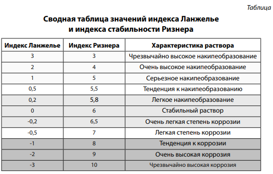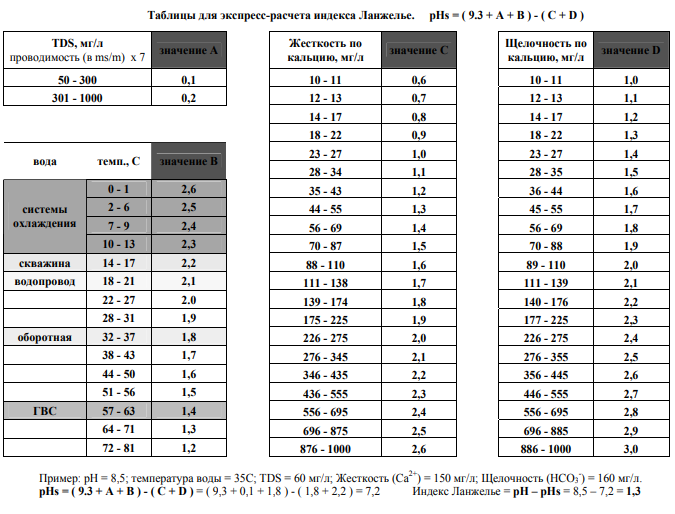 Индекс Ланжелье рассчитывается по формулам или с помощью таблиц для экспресс-расчета.