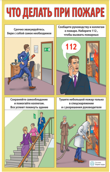 — список профилактических мероприятий по предупреждению пожара (например, требования выключать чайники или обогреватели, когда сотрудники уходят из помещения).