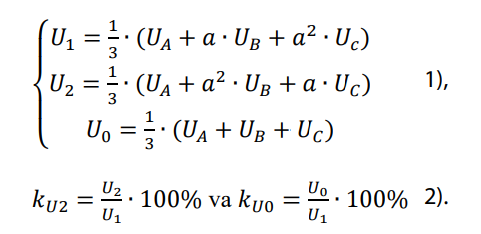В подобных условиях ЭДП функционирует как нагрузка без нулевой точки, в результате чего наблюдаются значительные различия в потоках реактивной мощности по фазам. Для количественного анализа фазной несимметрии напряжений в таких системах используется разложение по составляющим: