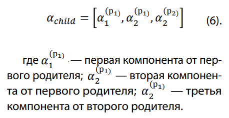 — потомок получает одну часть параметров от одного родителя, а вторую — от другого.