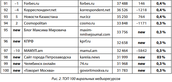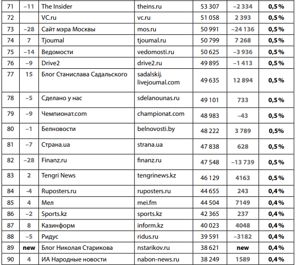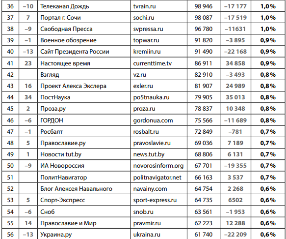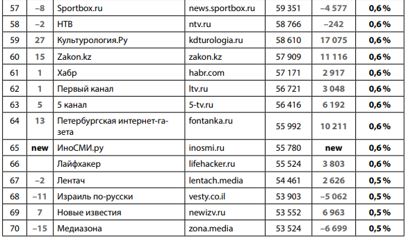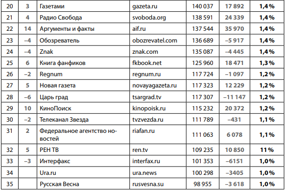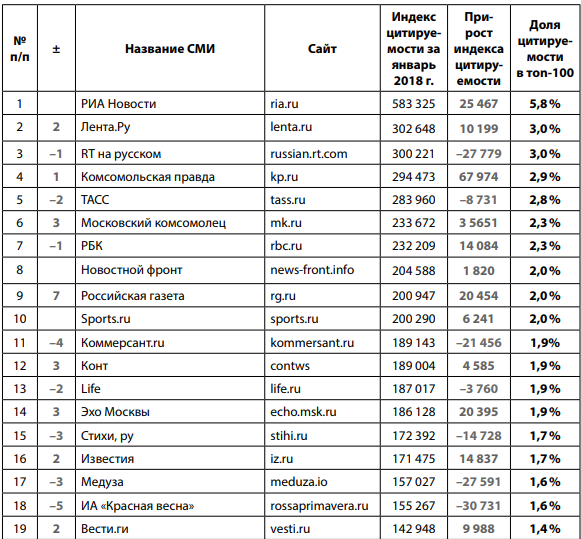РИА «Новости» традиционно занимает первую позицию среди российских СМИ. На втором месте «Лента.Ру», на третьем — RT на русском.