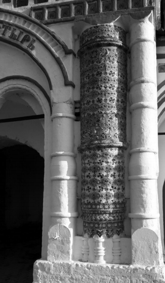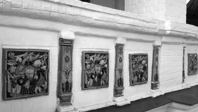 Многие из них бежали в православную Московию и селились в столице, в Гончарной слободе. А в 1654 г., в ходе начавшейся войны с поляками за освобождение Смоленска и югозападных, украинских земель, царский воевода Алексей Трубецкой взял штурмом Мстиславль и привез оттуда в Москву изразцовых дел мастера Степана Иванова. Пленник сначала трудился в Воскресенском монастыре — патриарх Никон, задумавший выстроить в Подмосковье Новый Иерусалим, выкупил часть земель у местных бояр, в том числе и у Трубецкого. После низложения патриарха всех мастеров из Нового Иерусалима отправили на работы в Оружейную палату Московского Кремля.