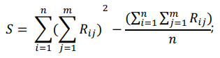 где S — сумма квадратов разности между суммой рангов, присвоенных всеми экспертами каждому фактору, и средним значением сумм рангов всех факторов;