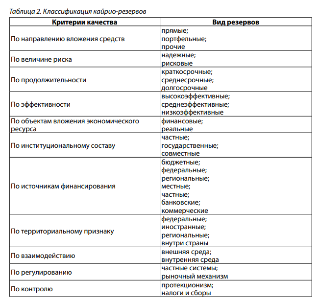 Кайрио-резервы относятся к числу важнейших факторов экономической динамики.