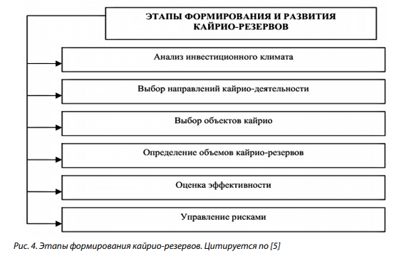 Кайрио-резервы — это способность удовлетворить установленные и (или) предполагаемые инвестором требования к рискам инвестиционных вложений и возможности их эффективного использования (цитируется по [5]).