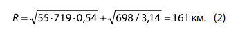 где: R – предельное расстояние размещения зоны отдыха от центра города (км);