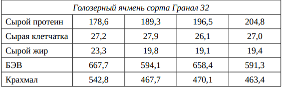Питательная ценность зерна ячменя, подготовленного к скармливанию комплексным методом
