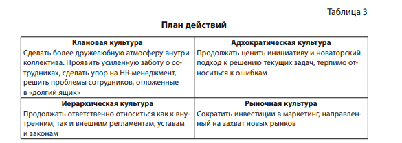 Теперь, когда однозначно понятно, что предполагает и что не предполагает изменение культуры организации, и определено, какие именно ценности должны быть закреплены, необходимо наметить план особых действий, необходимых для ускорения перемен.