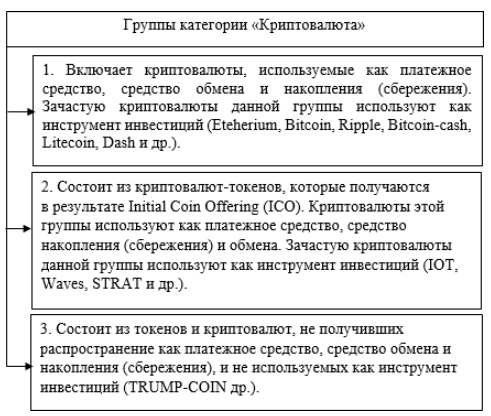 Рис. 1. Группы категории «криптовалюта» [8, с. 140]