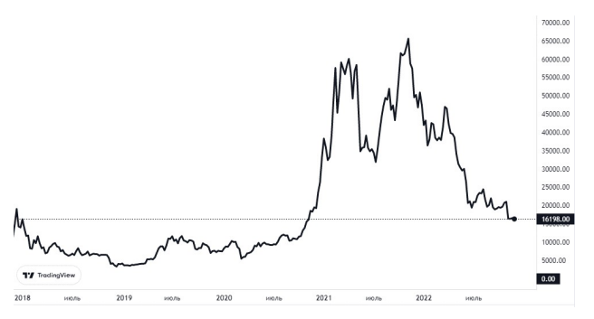 Рис. 3. Динамика стоимости криптовалюты Bitcoin за 2018–2022 гг. [6]