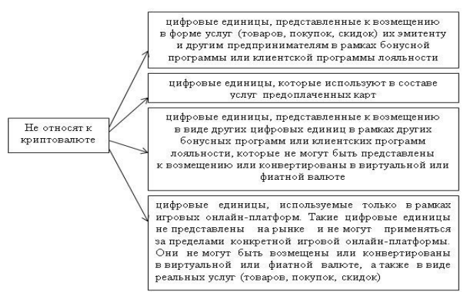 К виртуальной валюте не относят следующие платежные инструменты (рис. 2).