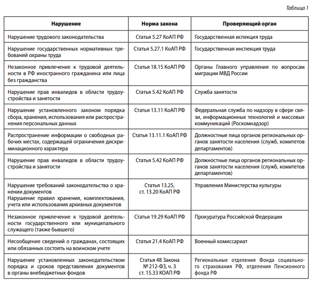Есть единичные примеры привлечения к административной ответственности кадровых работников. Так, руководитель HR-департамента был привлечен за нарушение законодательства в области квотирования рабочих мест для инвалидов и молодежи (см., например, решение Московского городского суда от 28.04.2015 по делу № 7-3822). Но чаще суды отказывают в привлечении к ответственности кадровиков и HR-ов (см., например, постановление Самарского областного суда от 06.05.2015 по делу № 4а-359/2015, решение Свердловского областного суда от 14.05.2015 по делу №72-507/2015).