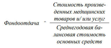 Показатель фондоотдачи применяется для анализа эффективности использования основных средств и соответствует тому, сколько медицинских товаров и услуг (в стоимостном выражении) производится на единицу стоимости основных средств.