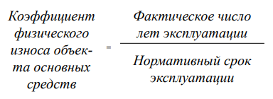 Для оценки физического износа рассчитывается коэффициент физического износа объекта основных средств по следующей формуле.
