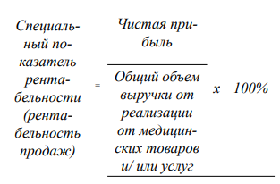 Наряду с абсолютными показателями валовой и чистой прибыли в статистике экономической деятельности организаций здравоохранения применяется специальный показатель рентабельности (рентабельность продаж).