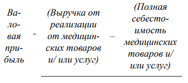 Показатель валовой (маржинальной) прибыли комплексно отражает финансовые результаты деятельности организации здравоохранения и характеризует превышение доходов от реализации медицинских товаров и (или) услуг над затратами по производству и реализации этой продукции. Он рассчитывается следующим образом.