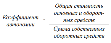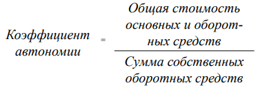 Коэффициент автономии характеризует роль собственного капитала в формировании активов организации и соответствует доле средств, которые организация может длительное время использовать в своей деятельности.