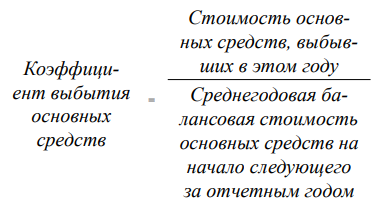 Коэффициент выбытия основных средств дополняет предыдущий показатель и характеризует своевременность вывода (списание) объектов основных средств из эксплуатации по достижении ими нормативного срока работы и находится следующим образом.