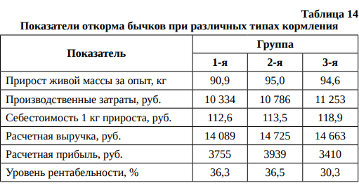 Наиболее высокими были производственные затраты при откорме на силосе и наименьшими – при сенном типе кормления бычков (табл. 14).
