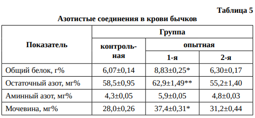 Контроль над физиологическим состоянием бычков осуществляли путем исследования крови, взятой из яремной вены у 3 гол. из каждой группы в конце опытного периода.