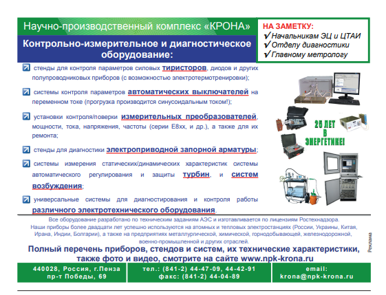 Статья "Научно-производственный комплекс «КРОНА»" Журнал "Электроцех / Электроцех"
