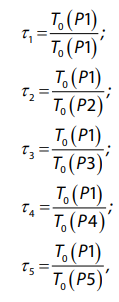 где τ1…5 — коэффициент изменения основного технологического времени по сравниваемым вариантам обработки; То(Р1)…То(Р5) — основное технологическое время обработки отверстия с режимами, соответствующими кодам Р1… Р5 (табл. 1).
