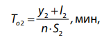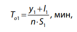 где l2 — длина обрабатываемого участка отверстия (l2 = 10 … 50 мм); y2 — величина перебега инструмента 5 мм (на всех режимах одинакова); s2 — подача на один оборот инструмента (0,019; 0,033; 0,047мм / об) на обрабатываемом участке отверстия.