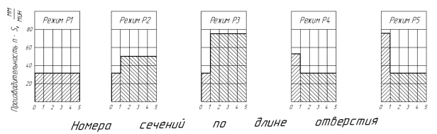 Рис. 2. Изменение производительности обработки по длине отверстия