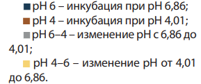 Разница в pH, используемая в ходе эксперимента, была направлена на моделирование внутренней среды в разных отделах ЖКТ и симуляция перехода химуса в различные отделы. На рис. 1–4 значения pH следующие: