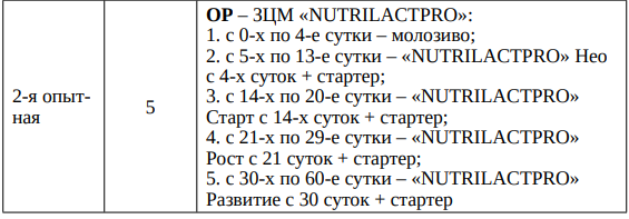 Анализ полученных в ходе эксперимента данных показывает, что применение ЗЦМ линейки NUTRILACTPRO положительно сказывается как на росте и развитии телят, так и на экономических показателях (таблица 2). Стоимость 1 л готового ЗЦМ известного российского производителя, предназначенного для выпойки телят после 30-х суток, дешевле 1 л цельного молока в 2 раза, а NUTRILACTPRO дешевле соответственно: «Нео» с 4-х суток – на 25 %, «Старт» с 14-х суток – на 33 %, «Рост» с 21-х суток – в 2 раза, «Развитие» с 30-х суток – в 2,5 раза.