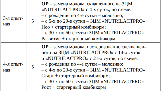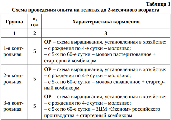 Третьим хозяйством в серии проводимых исследований стал «Племзавод им. Ленина» в Ковернинском районе Нижегородской области. Продуктивность коров здесь составляет 7 тыс. кг за лактацию. Телят в хозяйстве выпаивают пастеризованным и сквашенным молоком, используется также ЗЦМ российского производства. Опыты проводили по схемам, приведенным в таблице 3.