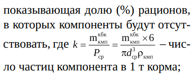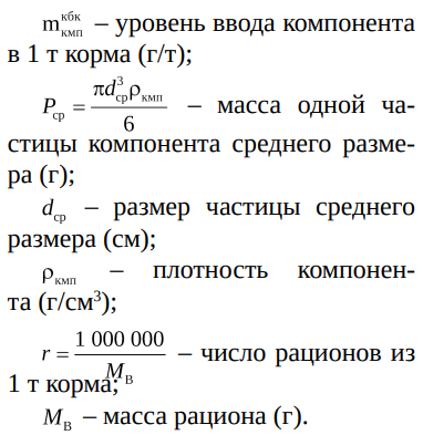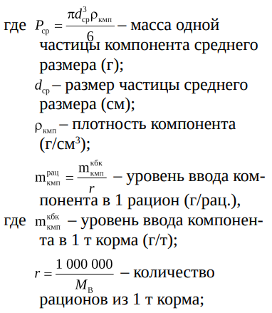масса частицы среднего размера совпадает с уровнем ввода компонента в рацион и количество частиц компонента равно количеству рационов.