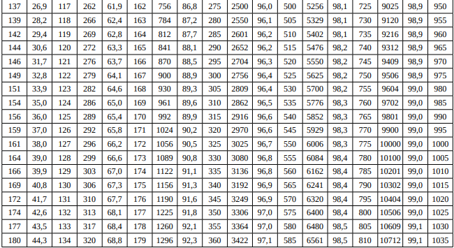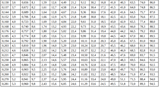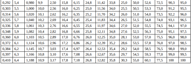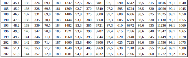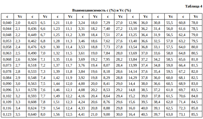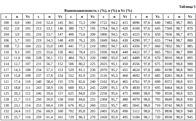 Например, вычислив значение с по приведенной формуле 3, можно по этим таблицам определить соответствующее ему значение