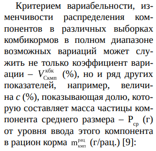 3. В высокоэффективных кормах необходимо контролировать вариабельность распределения в рационах животных всех без исключения компонентов.