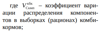 распределения компонентов в комбикормовой продукции, должны быть строго регламентированы. Биологический смысл имеет лишь значение коэффициента вариации распределения компонентов в рационах животных –
