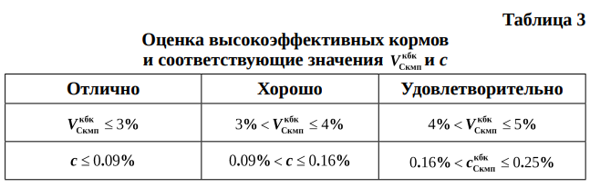 Ранее для оценки высокоэффективных кормов нами было предложено использовать значения коэффициента вариации