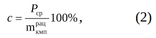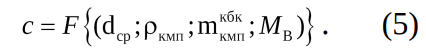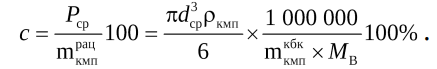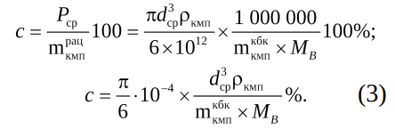 полностью совпадает с функциональной зависимостью для расчета величины с, показывающей какую долю (%), составляет масса частицы компонента среднего размера Pср (г) от массы уровня ввода этого компонента в рацион
