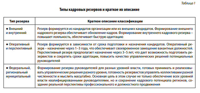 Таким образом, определение цели формирования кадрового резерва и его типа является основой последующей работы с резервистами и определит критерии обора, формы обучения и особенности использования резерва.