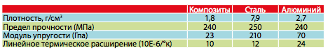— композитные материалы на 30–45% легче алюминиевых конструкций, разработанных с учетом тех же функциональных требований;