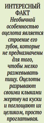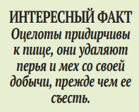 Но самым главным и опаснейшим врагом оцелота является человек. Еще совсем недавно оцелота активно преследовали охотники из-за его красивого и ценного меха.