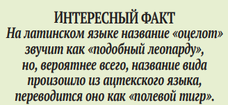 Оцелот — не очень крупный хищник, принадлежащий к кошачьему семейству. Существует несколько подвидов оцелотов, которые различаются между собой прежде всего местом своей постоянной дислокации, а внешне практически идентичны.