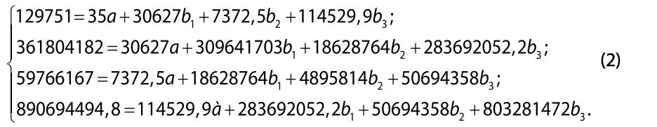Решение данной модели было осуществлено на базе данных сельскохозяйственных предприятий Сергиево-Посадского и Талдомкого районов Московской области. Метод наименьших квадратов использовался для оценки параметров уравнения множественной регрессии.