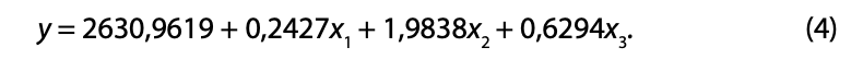 Решение также свидетельствует о значительном влиянии собственного капитала на объемы выручки от реализованной продукции, который можно направить в фонд накопления для приобретения основных средств, осуществления инновационной деятельности. В то же время наибольшее влияние на развитие инновационной деятельности имеет уровень государственной поддержки. Для построения многофакторной корреляционно-регрессионной модели нами были взяты три основных факторных признака: х1 — капитальные инвестиции, тыс. руб., х2 — государственная поддержка, тыс. руб., х3 — приведенные расходы, тыс. руб.