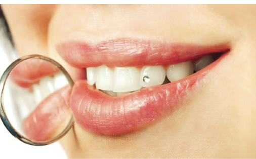 12. Скайс — так называемый «зубной пирсинг». Способ выполнения довольно прост, поскольку для него применяются новейшие материалы, которые попросту приклеивают стразы к поверхности зуба. При этом целостность зубной эмали не нарушается. Наиболее традиционным местом для скайса является верхний боковой резец.