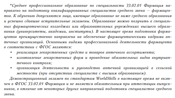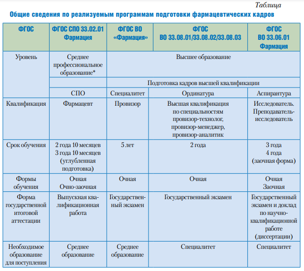 Федеральный государственный образовательный стандарт высшего образования — специалитет по специальности 33.05.01 Фармация [12], актуализированный на основе профессиональных стандартов, утвержден приказом Минобрнауки России от 27.03.2018 № 219.