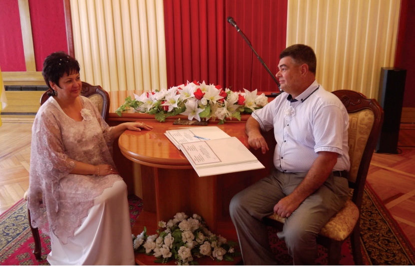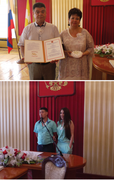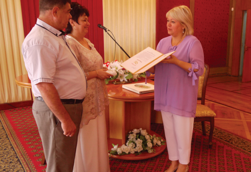 19 июля 1986 года в отделе ЗАГС города Минеральные Воды был зарегистрирован брак (Ф. И. О. юбиляров), и вы впервые сказали друг другу замечательные слова: «Мой муж!», «Моя жена!».